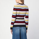 This vibrant striped cardigan offers a stylish and sustainable addition to your wardrobe.