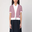 This Thom Browne linen cardigan features iconic stripes for a classic, preppy look.