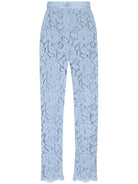 Elegant trousers with delicate lace details for a sophisticated statement.