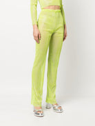 Elevate your style with these rhinestone-embellished, semi-sheer trousers.