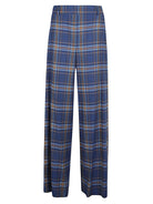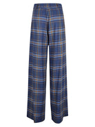 These blue trousers feature a paint motif and a comfortable, wide-leg design.