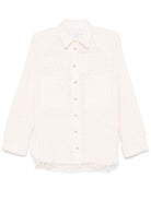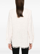 This chic tweed shirt in a delicate powder pink hue elevates your style.