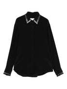 This elegant black shirt features crystal embellishments for a touch of glamour.