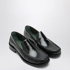 Step out in style with these shiny black leather loafers, perfect for any occasion.