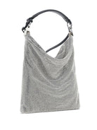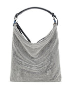 This stunning shoulder bag features eye-catching rhinestone embellishments and a unique draped design.