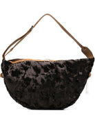 This stylish shoulder bag features a unique fur-effect texture and half-moon shape.