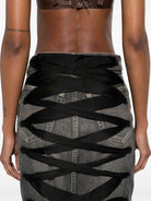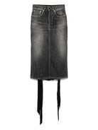 This denim skirt features lace-up detailing for an edgy, modern look.