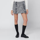 This wool-blend mini skirt features a striking black and white pattern for a chic look.