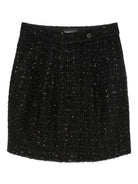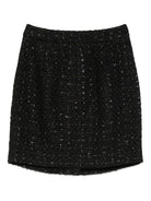 This Emporio Armani mini skirt features a stylish tweed texture and subtle sequin embellishments.