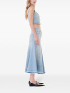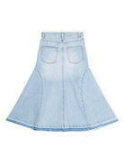 This A-line denim skirt offers a stylish and comfortable fit for everyday wear.