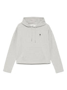 Stay cozy and stylish in this light grey cotton hoodie featuring the iconic Ami De Coeur logo.