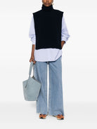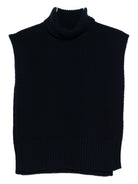 This sleeveless knit sweater is a versatile addition to your wardrobe.