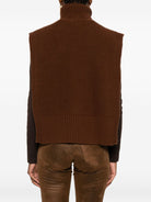 Stay warm and stylish in this sleeveless wool turtleneck sweater.