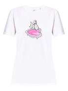 This stylish T-shirt features a fun dog print design.