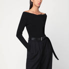 Elegant black top with a fitted silhouette, perfect for sophisticated style.
