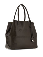 This leather tote bag features a tie-top fastening and embossed logo to the front.
