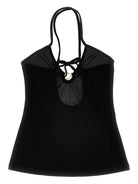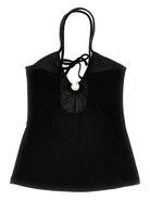 This V-neck top features a logo ring detail and crossed shoulder straps.