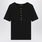 This black t-shirt features gold-tone buttons for a touch of elegance.