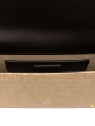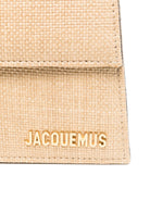 This raffia-effect shoulder bag features signature gold-tone logo lettering.