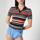 This striped polo shirt offers a blend of comfort and style for everyday wear.