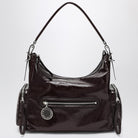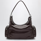 This faux leather shoulder bag features a crinkled texture and glossy eggplant effect.