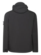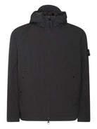 This black Stone Island soft shell coat is a stylish and functional outerwear choice.