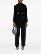 - Double-Breasted Fastening – Provides a secure and classic fit.