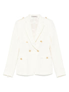 This wool jacket features a timeless double-breasted design for sophisticated style.